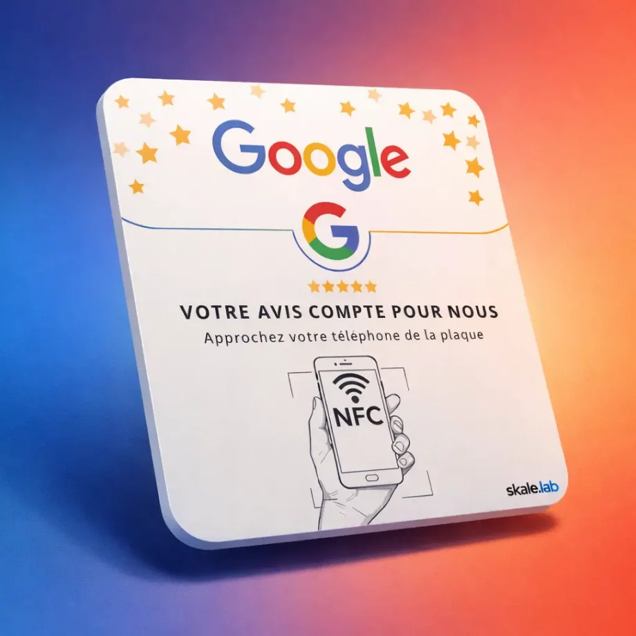 plaque NFC Google Avis, vous simplifiez le processus : vos clients peuvent laisser un avis en quelques secondes, directement sur votre fiche Google Business.